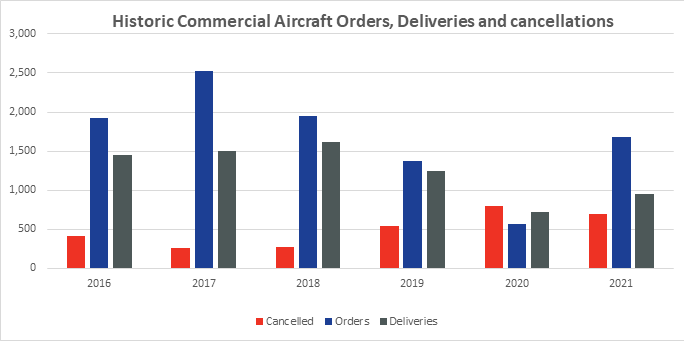 When looking at the health of the aerospace sector, the global aircraft orders and deliveries data is a key indicator. The impact that COVID-19 has had on the sector has been significant and this is noticeable from travel restrictions that have grounded growth in the aviation sector more generally.