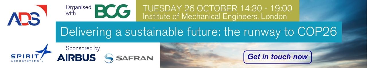 On October 26, ADS will be hosting a sustainability in aerospace event at the Institution of Mechanical Engineers, in the lead up to COP26 in November, organised in association with knowledge partner BCG.