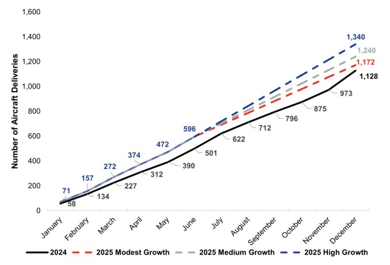 • Modest growth scenario: 1,172 aircraft delivered by year-end – a 4% increase on 2024 figures