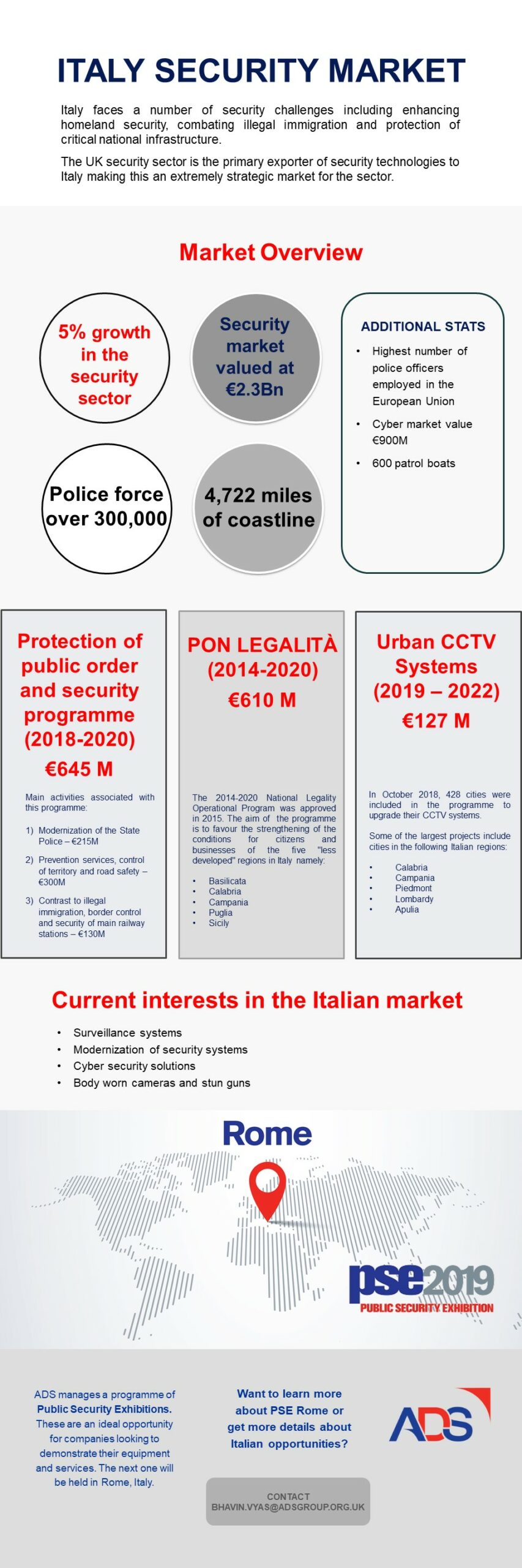 As we head to Rome later this month for the next in our series of Public Security Exhibitions check out this infographic on market size, opportunities and priority areas for the Italian security market.